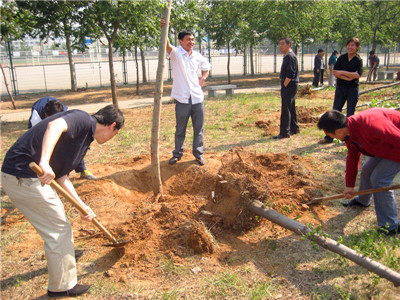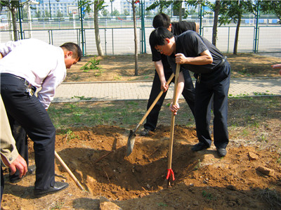 材料科学与工程学院、教务处、网络管理中心的党政负责人、全体教职工和部分学生积极参加了园区的垃圾捡拾、杂草清运及栽植树苗的活动。大家都展现出极大的热情,栽下的一颗颗树苗,象征着一份份绿色的希望;流下的一滴滴汗水,代表着每一个人的奉献与关爱。此次活动,共种植法桐40余棵,安装石凳7张。