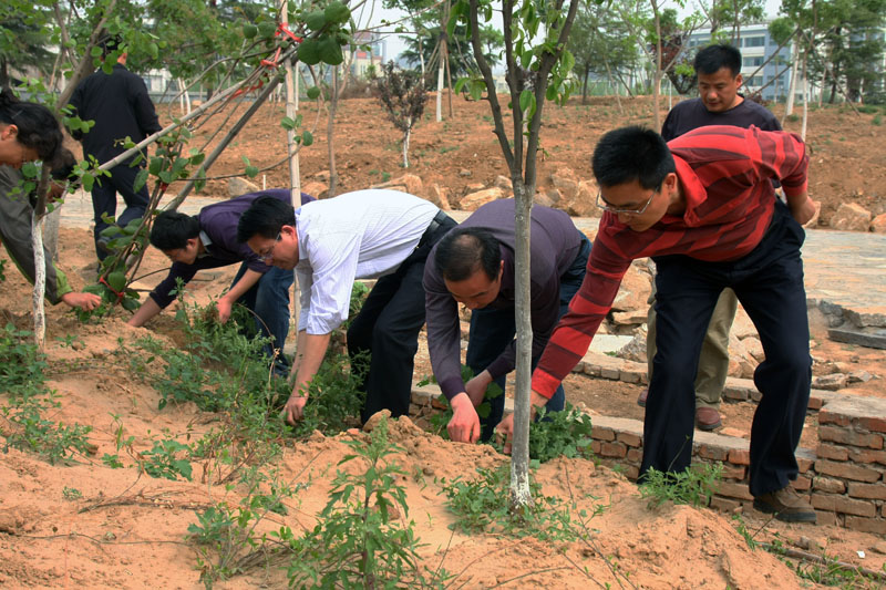 5月5日下午,校党委组织部杨天梅部长、党校校长姜洪雷等与艺术学院党政领导及40余名入党积极分子代表一同来到位于文科楼后的�k秋园,在暖融融的阳光里,大家一起动手,认真清除绚秋园里的杂草与杂物,为了让这个休读点尽快成为学校的亮丽景观奉献自己的汗水。