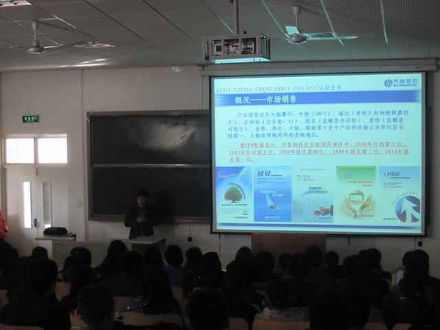 企业宣讲会在1号教学楼B座109教室进行。宣讲会吸引了来自我校化工学院、食工学院、机械学院等院系的300余名毕业生,场面非常火爆,闫经理向应聘学生介绍了齐鲁制药的企业概况、企业荣誉、科研开发、人力资源需求、发展前景等关系学生切身利益的情况,在场毕业生的提问得到了闫经理的耐心解答。随后公司代表对毕业生进行了面试,最终同我校制药、药物制剂、应用化学、生物工程等专业的80余名毕业生达成了就业意向。