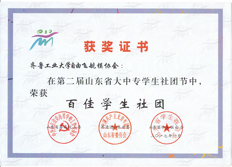 近日,共青团山东省委下发通知,对第二届山东省大中专学生社团节开展情况进行了表彰,齐鲁工业大学团委在全省众多团组织单位中脱颖而出,荣获优秀组织奖,并在11项比赛中荣获二等奖2项,三等奖2项,优秀奖6项,“自由飞航模协会”及“盘龙棍武术协会”被评为山东省“百家学生社团” 91香蕉视频。
