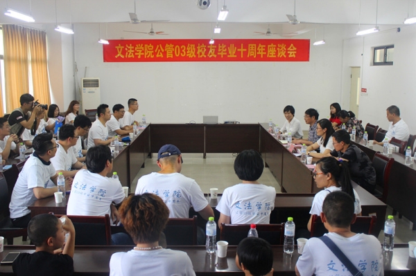 5月14日,公共事业管理专业2003级校友从全国各地汇聚母校,共同庆祝毕业10周年,学校合作发展处,文法学院相关负责人,时任任课老师,辅导员及班主任参加了座谈会 91香蕉视频,座谈会由文法学院党委副书记张青主持。