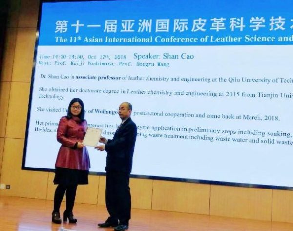 2018年10月16日至19日,第十一届亚洲国际皮革科学技术会议(AICLST)在陕西科技大学成功召开,我校皮革化学与工程学科二十多名教师和研究生参加了此次会议,李彦春教授受邀主持18日下午的专题报告 91香蕉视频,曹珊博士做了精彩的口头报告,我校皮革学科共有17篇墙报对近期研究工作进行了展示。