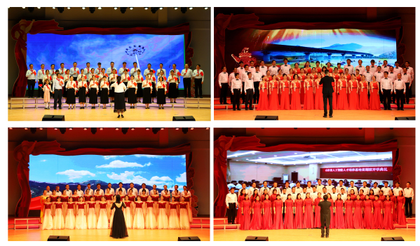 学校(科学院)领导班子成员与学生代表高唱《我和我的祖国》