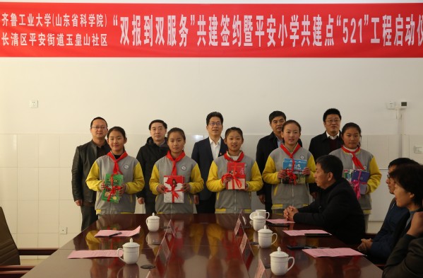在学校(科学院)与平安小学“521”共建工程签约启动仪式上,王英龙重点介绍了科教融合以来教学科研,学科建设,社会服务,产学研合作和志愿服务等方面开展的工作以及取得的成绩,他指出,学校(科学院)党委高度重视“双报到双服务”工作,充分利用科教资源,丰富活动内容载体,积极探索长效服务机制,开展大量卓有成效的共建活动,取得了良好的社会效果,目前学校(科学院)已与长清区三庆青年城社区 91香蕉,乐天社区和历下区科苑路社区等建立了“双报到双服务”共建关系,下一步将持续推进形式多样,扎实有效的共建共享工作,精准对接社区群众需求,积极认领服务项目,多元化推进工作力量进社区,志愿服务进社区,帮贫帮困进社区,逐步形成高校和社区共建共享共促长效机制,确保“双报到双服务”工作落实落地。