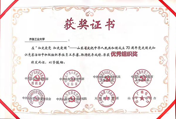 近日,“知史爱党,知史爱国”——山东省庆祝中华人民共和国成立70周年“党史国史知识竞赛”获奖名单发布,学校(科学院)获得优秀组织奖 91香蕉视频