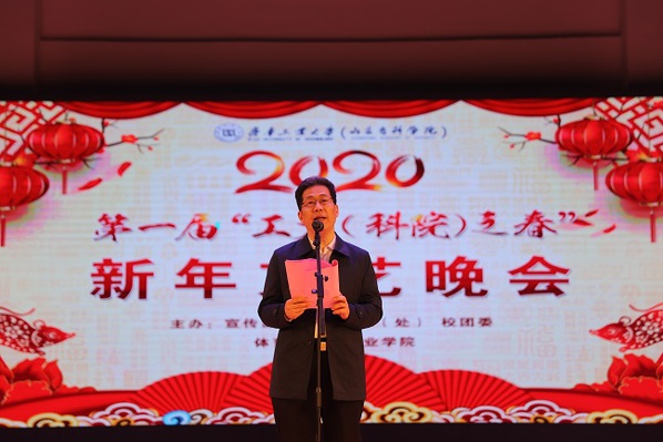 福猪踏雪去,金鼠迎春来,12月30日晚,由党委宣传部 91香蕉视频,学生工作部(处),团委,体育与文化产业学院主办的第一届“工大(科院)之春”2020年新年文艺晚会在艺体中心大礼堂隆重举行,党委书记王英龙,党委副书记张洪英,副校(院)长马文才,曹茂永,纪委书记房克乐出席晚会,校(院)有关部门负责人及师生800余人参加活动。
