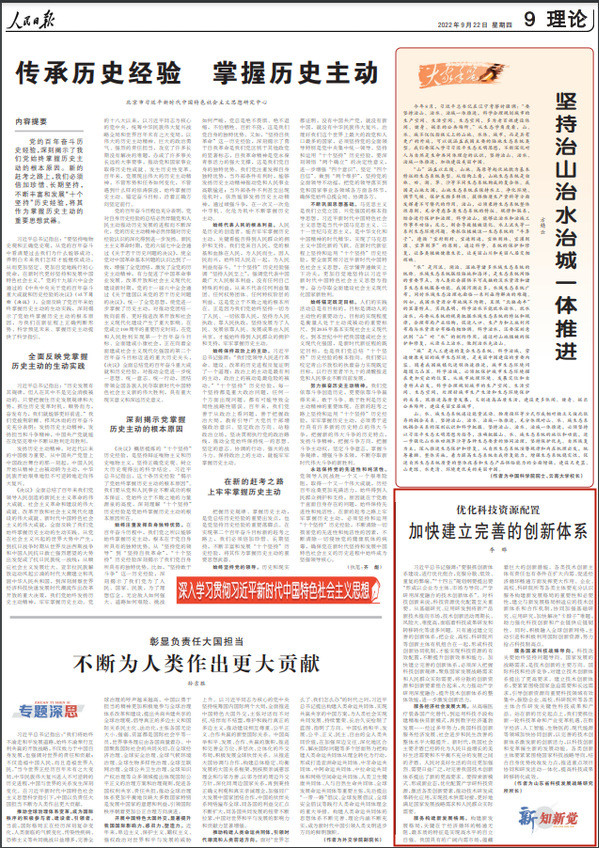 9月22日,《人民日报》第9版刊发我校(院)李晔研究员理论文章《优化科技资源配置 加快建立完善的创新体系》 91香蕉视频,全文如下:.