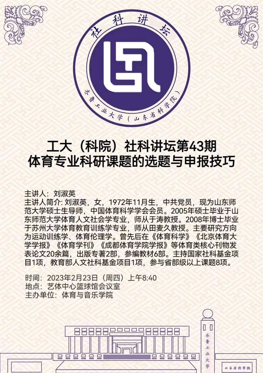 工大(科院)社科讲坛第43期:体育专业科研课题的选题与申报技巧