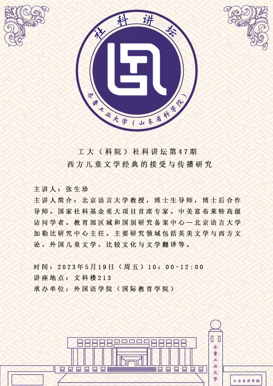 "91官网" 工大(科院)社科讲坛第47期:西方儿童文学经典的接受与传播研究