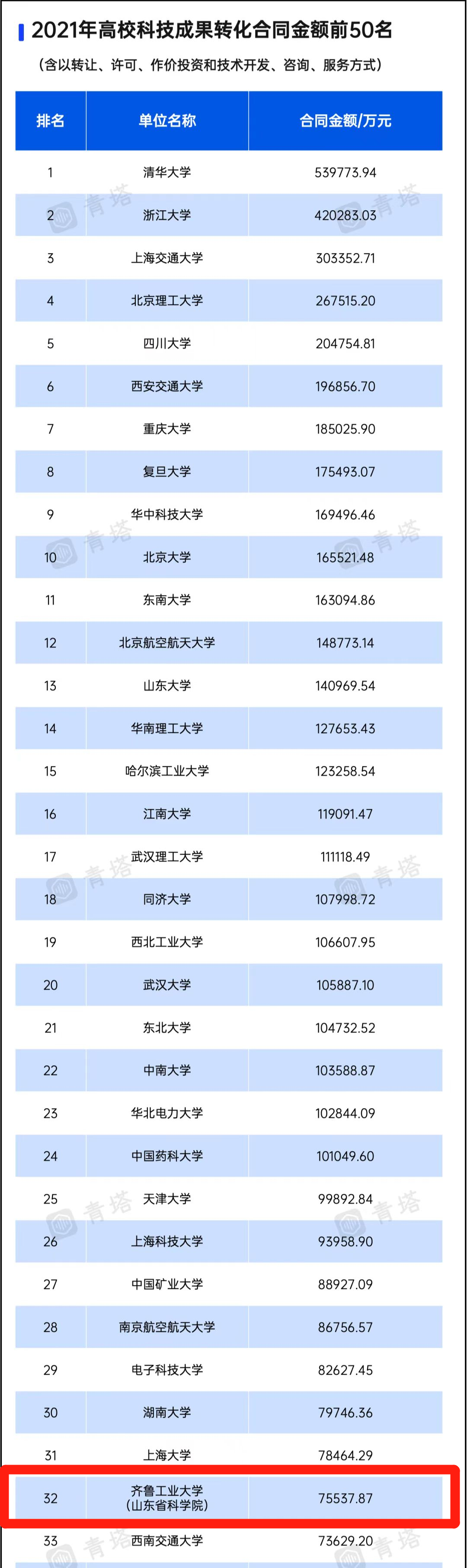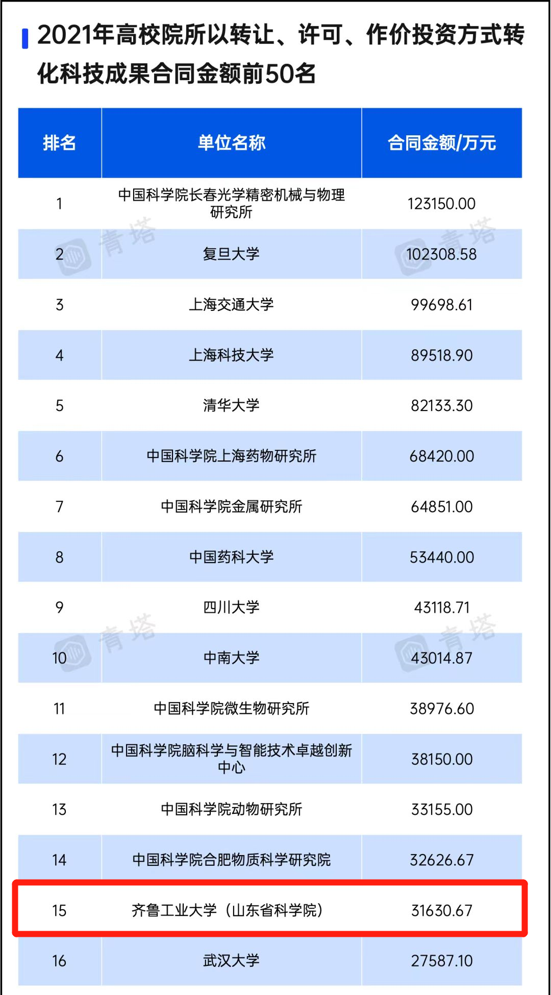 近日,科技部科技评估中心在京发布《中国科技成果转化年度报告2022(高等院校篇)》,齐鲁工业大学(山东省科学院)2021年度科技成果转化合同金额达到7,554亿元,位列全国高校第32位,较2020年6 91香蕉视频,248亿元增长21%。。