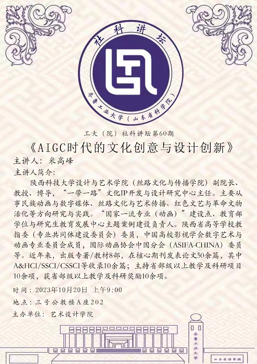 "91视频入口" 工大(科院)社科讲坛第60期:AIGC时代的文化创意与设计创新