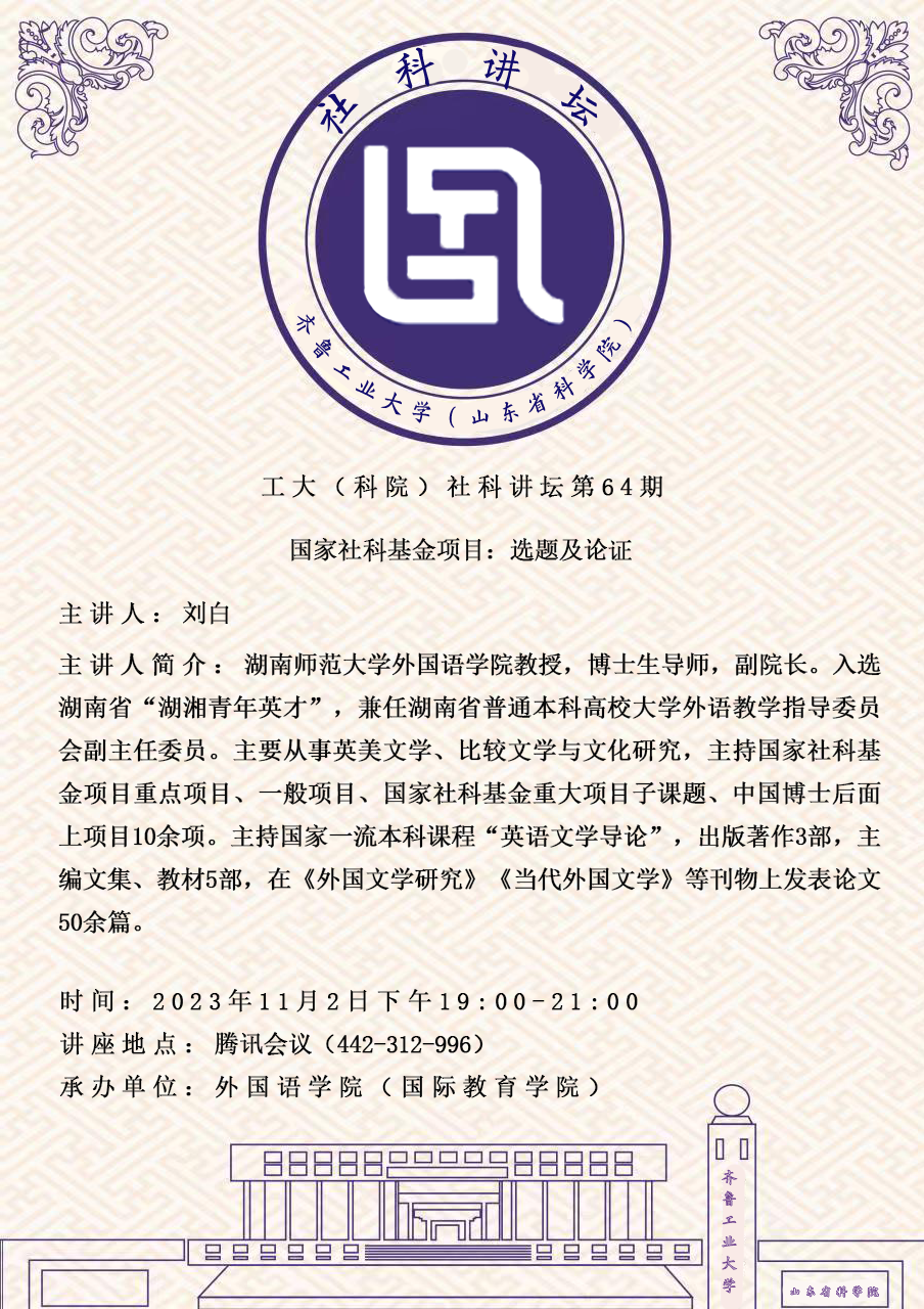 工大(科院)社科讲坛第64期:国家社科基金项目:选题及论证