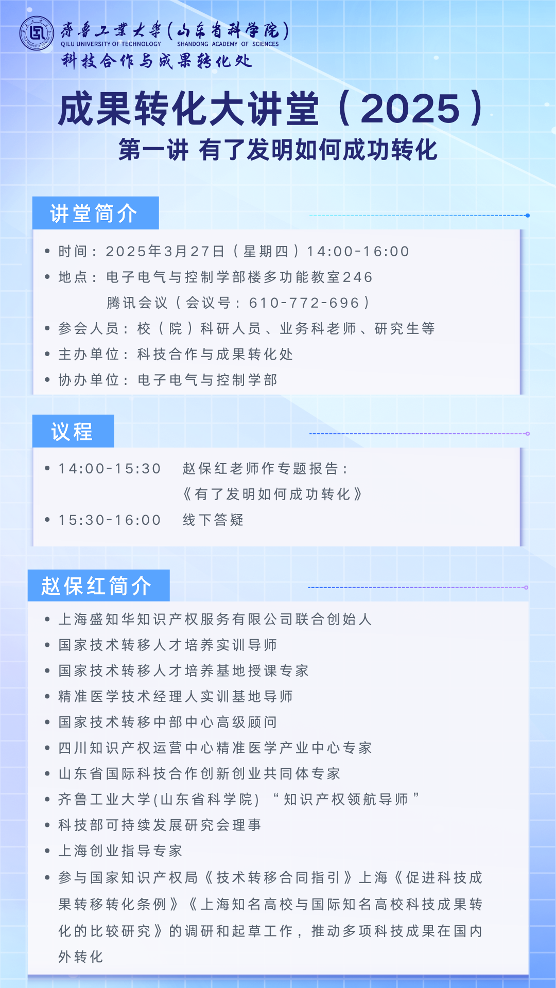校(院)成果转化大讲堂(2025)第一讲:有了发明如何成功转化
