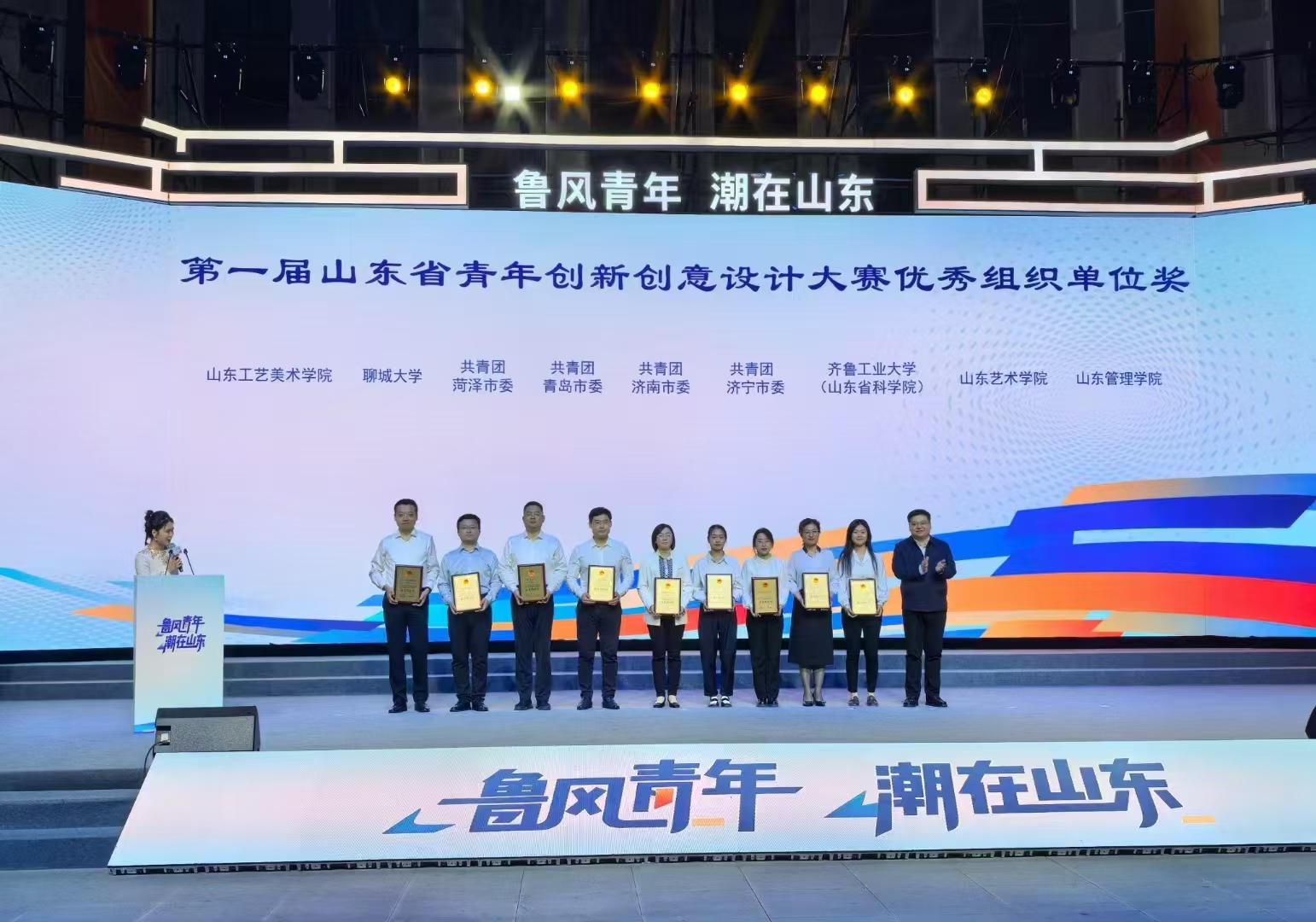 5月10日 91香蕉视频,由共青团山东省委,山东省学生联合会联合举办的“鲁”风青年“潮”在山东——第一届山东省青年创新创意设计大赛在菏泽曹县收官,校(院)艺术设计学院学生作品《大佛山灵韵》《济南八里桥菜市场文创设计》荣获“潮”爆齐鲁——城市文创设计一等奖,作品《朴绘纤琢》荣获“潮”爆齐鲁——原创华服设计一等奖,其他作品分别荣获二等奖2项,三等奖3项,优秀奖1项,校(院)团委荣获优秀组织奖。