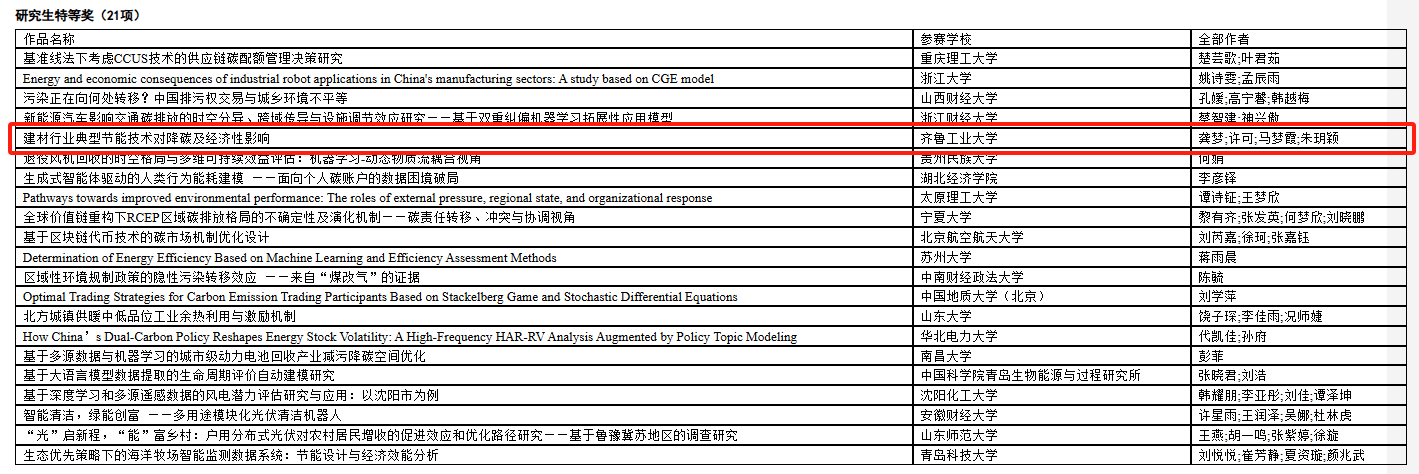 5月24日,第十一届全国大学生能源经济学术创意大赛在山西财经大学成功举行,由环境学部闫桂焕研究员,许崇庆研究员指导的龚梦,许可,马梦霞 91香蕉视频,朱玥颖4位学生共同完成的作品《建材行业典型节能技术对降碳及经济性影响》荣获国赛特等奖,指导老师获得优秀指导教师奖。