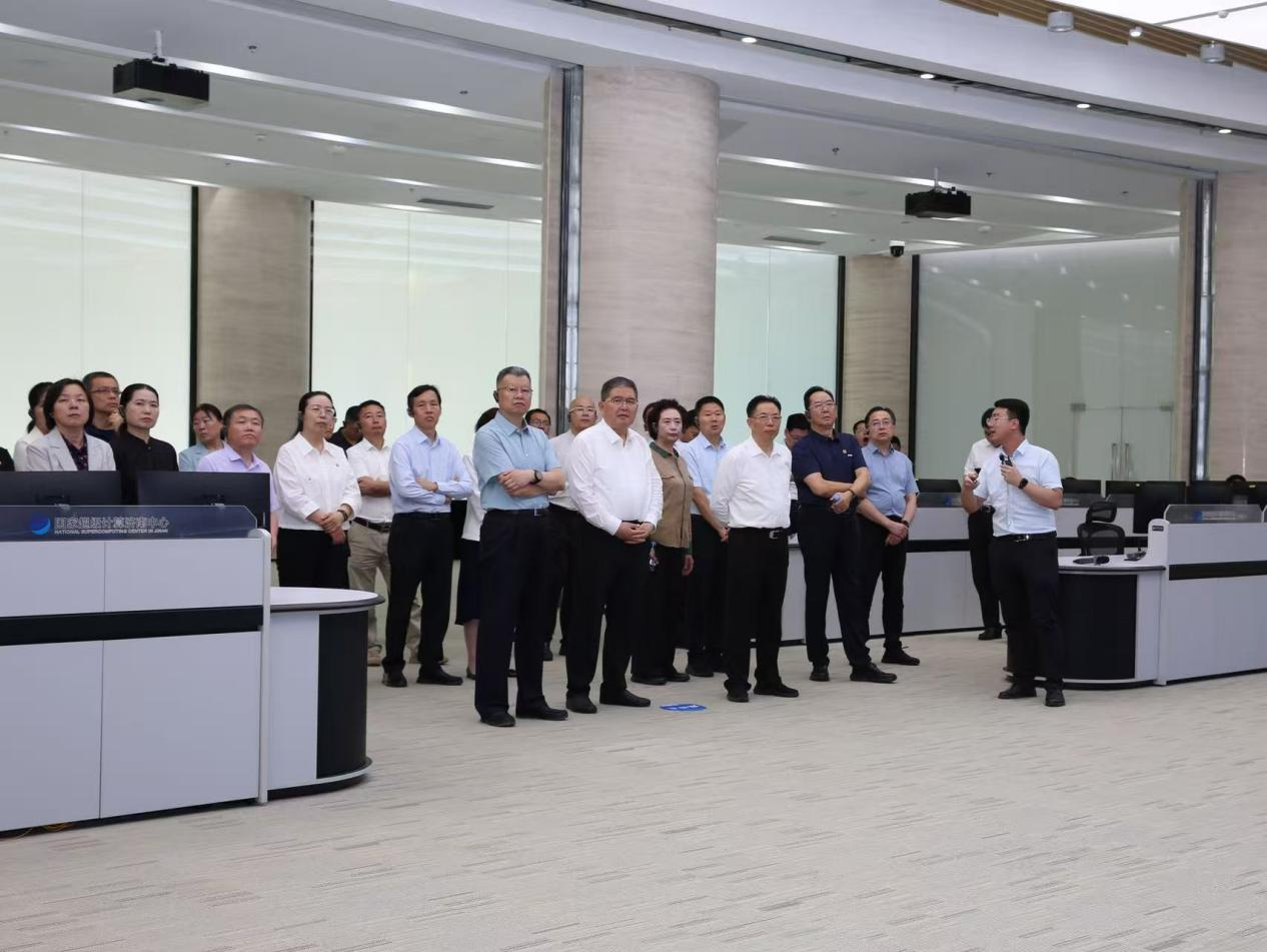 9月11日上午,山东省人大常委会副主任 91香蕉视频,党组副书记徐海荣一行到国家超级计算济南中心(以下简称济南超算),实地调研济南超算在高性能计算,人工智能等前沿技术领域的创新成果与产业化进展,省人大常委会委员,教科文卫委员会主任委员佘春明,省人大常委会机关党组成员,代表工委主任苏建斌,省教育厅二级巡视员管恩文,校(院)党委书记吴衍涛出席活动,计算学部负责人参加活动。