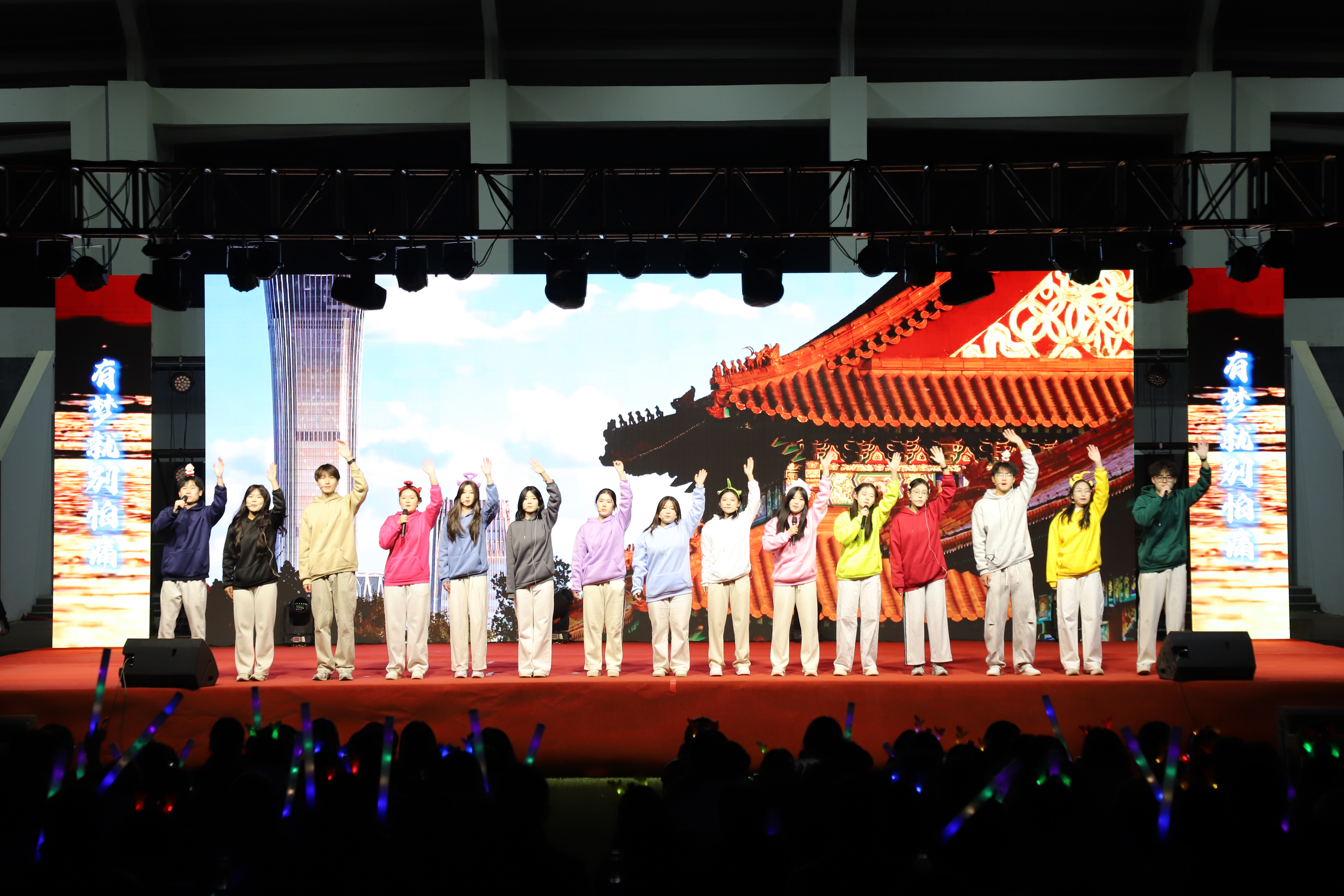 晚会在《初见 淬炼 启航》与《向光逐梦》的暖场光影中徐徐启幕,伴随开场曲《我们都是追梦人》的激昂节奏,现场气氛迅速升温,悄然拉近新生彼此距离,整场演出节目多元纷呈,涵盖歌曲,舞蹈,相声,器乐,话剧与情景剧等,兼具蓬勃朝气与思想深度,刘俊彤同学以空灵声线演绎《光年之外》,勾勒星河浩渺的追梦图景,杨阳,刁文茜等同学的现代舞表演《Yes,Ok,》舞步轻快灵动 91黄,尽显少年滚烫朝气,张宇凡,宋一博等同学深情吟唱《我与世界的帧帧瞬间》,以歌声定格成长记忆,倾诉未来无限憧憬。
