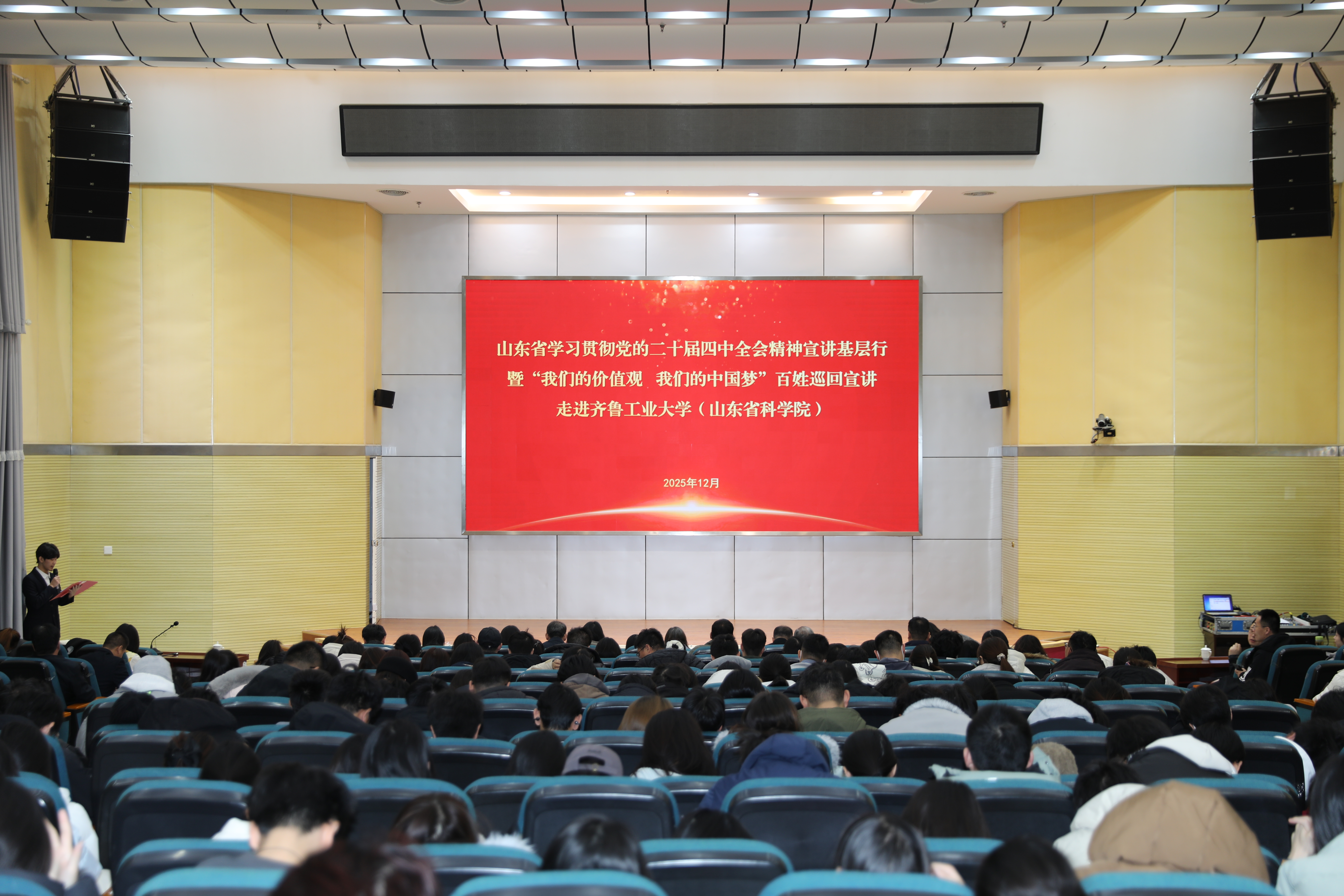 12月5日,由省委宣传部,省委讲师团主办的山东省学习贯彻党的二十届四中全会精神宣讲基层行暨“我们的价值观 我们的中国梦”百姓巡回宣讲走进齐鲁工业大学(山东省科学院)长清校区,一场融合理论深度,故事温度与艺术感染力的宣讲 91香蕉视频,为现场师生带来深刻的思想启迪与情感共鸣。