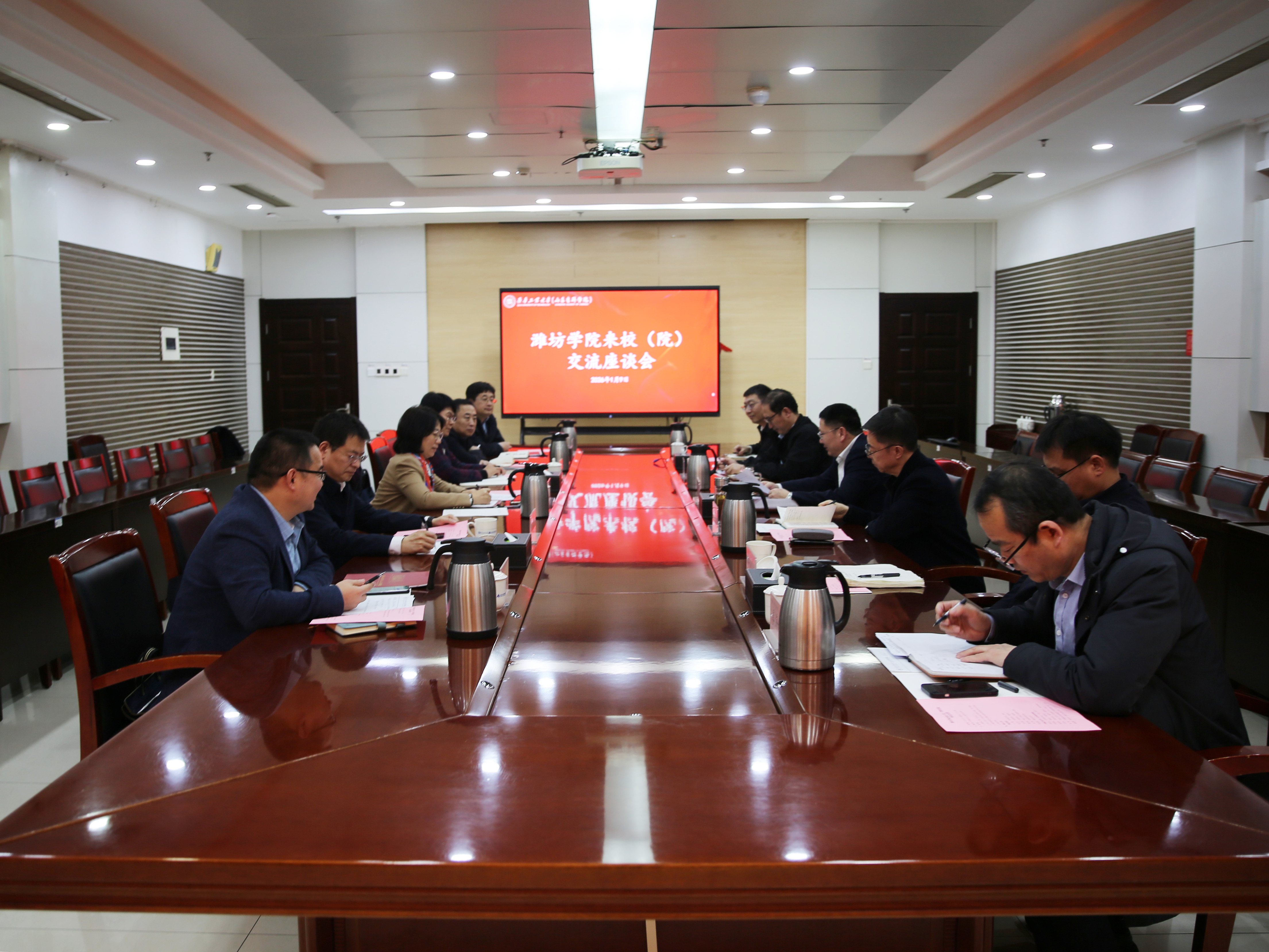 1月9日下午,潍坊学院党委副书记,校长王霞一行来齐鲁工业大学(山东省科学院)调研交流,校(院)长段培永出席座谈会 91香蕉视频,潍坊学院副校长赵卫红,任立春,副校(院)长许崇海,侯连涛,双方学生工作部,发展规划处,教务处等相关部门负责人参加活动。